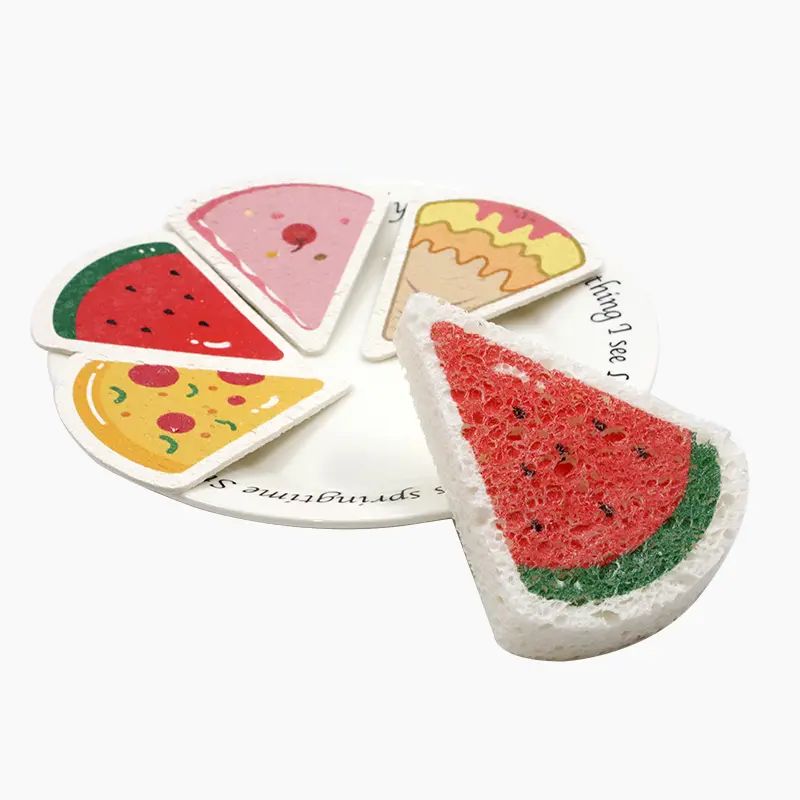 Known as a Cellulose sponge for its many functions. I believe everyone is familiar with Kapok, because the application in life is more extensive, and this material is also naturally pollution-free, you can rest assured of use, here to introduce its many functions. This one is a printed compressed Cellulose sponge. Wet Cellulose sponge is dried and compressed before printing. You can customize the size, shape, and pattern. This one is a lovely watermelon and pizza design, very cute. Function 1: multi-purpose for facial cleaning, the cleaning effect is significant cant, and can achieve the effect of shrinking pores. Function 2: related to skin cleansing, the use of shower Gel can play a role in protecting the skin and thoroughly clean. Function 3: Clean the vehicle, for the body and window glass cleaning, need to use soft items, just won’t produce scratches. Function 4: some of the kitchen tableware, ceramics, and glass products need to use a more soft materials, scrub, wood pulp cotton just to meet the requirements.Function 5: Industrial Machinery, in the industry of some machines, the mechanical surface will be attached to this layer of more difficult-to-remove oil stains, with the powerful adsorption of Kapok can be very good removal.
