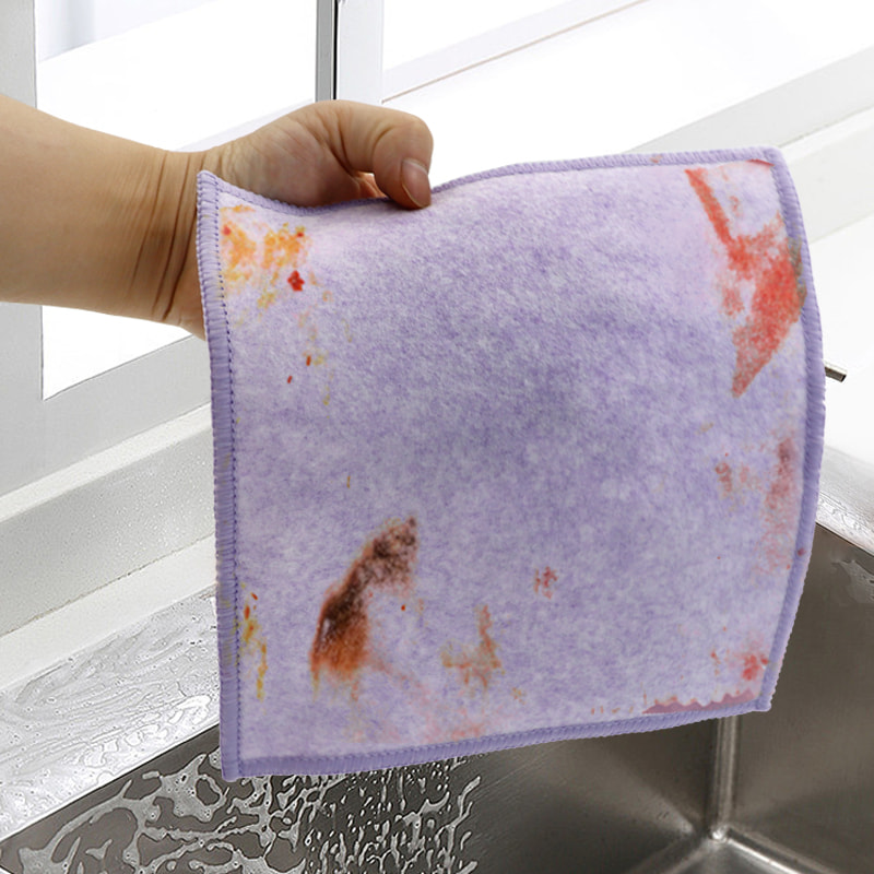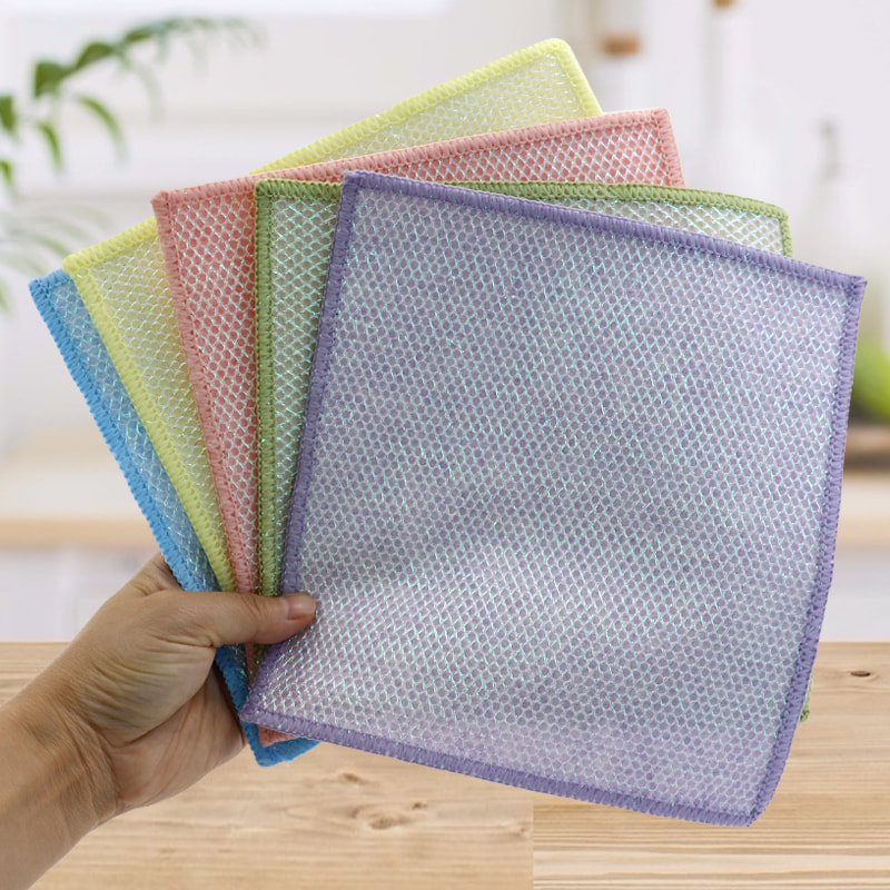 Special-shaped structure, colorful, high appearance; One side is colorful cleaning cloth with strong scraping ability, and the other side is mesh cloth, which meets the dual functions of cleaning while scraping; It is oil-free and has strong water absorption.One side is implanted with colorful silk of various patterns, and the other side is non-oily and water-absorbing viscose cloth surface, which is beautiful and can meet the dual functions of scrubbing and scrubbing on one side.