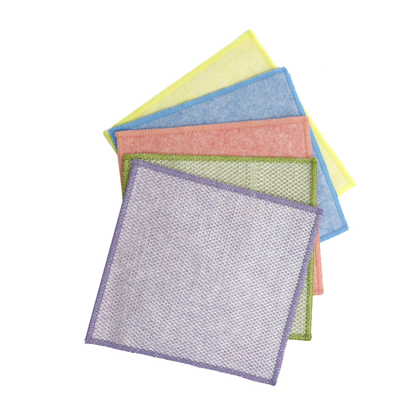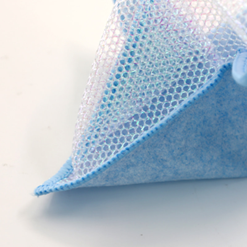 One side is colorful Polyester mixed nylon with strong scraping ability, and the other side is mesh cloth